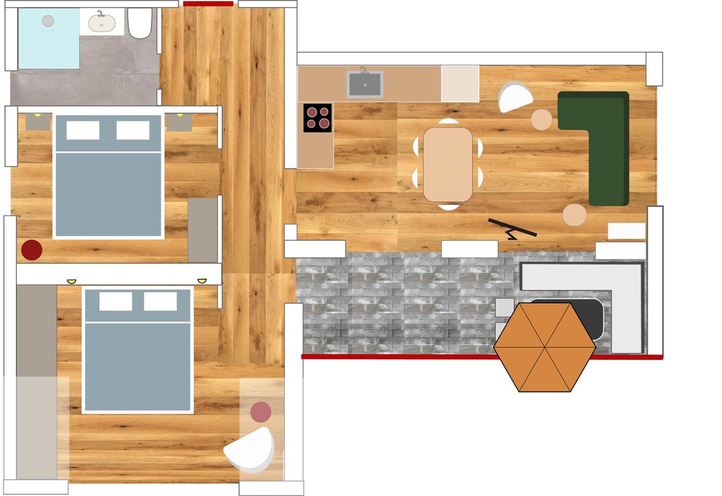Die Wohnung ist ganz neu, mit hochwertigem Echtholz Eiche Parkettboden, modernem Badezimmer mit ebenerdiger Dusche. Das Schlafzimmer ist mit einem Boxspringbett mit neuen hochwertigen Matratzen sowie Sommer – Daunendecken in Komfortgröße ausgestattet. Sollte es mal etwas kühler sein gibt es zusätzlich auch kuschelige Fleecedecken.